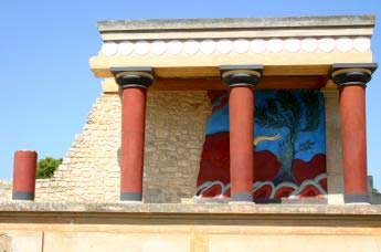 Cnosós, con sus 17.400 metros cuadrados construidos y unas 1500 habitaciones, constituye el principal de los palacios cretenses y en el que Evans vio la sede del mítico rey Minos. De él tomará el nombre para toda la cultura de la isla. Todo el complejo se aglutina en torno al patio central y dividido en dos grandes conjuntos, oriental y occidental, separados por sendos accesos al norte y al sur. En conjunto, en la distribución de las habitaciones, el ala oeste corresponde a la zona oficial y de almacenes, mientras el ala este se hallaba ocupada por los talleres de los artesanos y la residencia particular de la jerarquía nobiliaria del palacio. Las habitaciones del ala este son de tamaño más reducido que las salas oficiales, aunque su altura es uniforme, de 3,5 metros y su disposición interior, de muros ciegos, sólo permite su iluminación a través de los numerosos patinillos o pozos de luz. Las paredes se hallaban profusamente decoradas con frescos, la mayoría casi completamente perdidos.